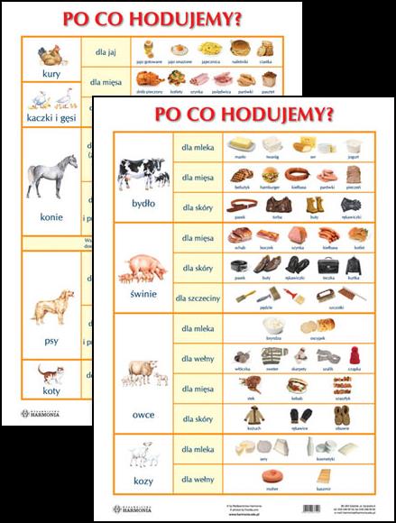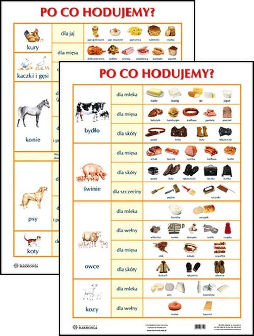 PO CO HODUJEMY?♦ format 61 cm x 86 cm♦ dwustronnie zalaminowane♦ wieloletnia trwałośćSprzedaż 1-4 plansz tylko bezpośrednio w Wydawnictwie lub w Księgarni Wydawnictwa.Prezentujemy Państwu plansze edukacyjne dla przedszkoli i klas 1-3. Jest to zestaw pomocy dydaktycznych, które przydadzą się w każdej klasie i sali przedszkolnej.Tematyka plansz jest zgodna z programem nauczania i dotyczy rzeczy bliskich dziecku. Dzięki wyrazistym ilustracjom i zdjęciom tablice w przyjazny sposób przedstawiają realia naszego świata. Poszczególne wzory sprawdzą się w dekorowaniu klasy lub pokoju dziecka, zwłaszcza jeśli ma już ono swoje zainteresowania.Plansza ta pokazuje, po co hodujemy zwierzęta. Są tu uwzględnione wszystkie najpopularniejsze rodzaje zwierząt hodowanych (także drób i zwierzęta domowe). Plansza ta z pewnością pomoże wyjaśnić dziecku, które produkty kupowane w sklepie pochodzą tak naprawdę z hodowli.