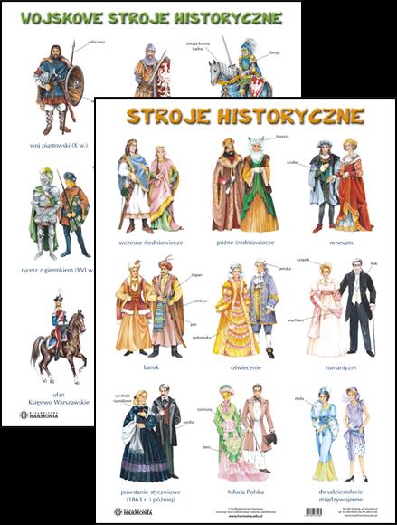 Odpowiedzi na te pytania znajdują się na pierwszej stronie planszy prezentującej stroje historyczne. Jest to znakomita pomoc w nauce historii – pozwala poruszyć wyobraźnię dzieci, zwłaszcza chłopców.