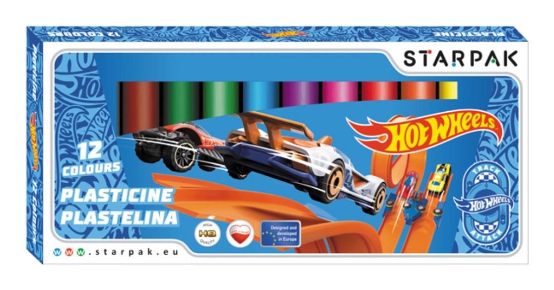Plastelina z kolekcji Starpak z licencją Hot Wheels. W zestawie znajduje się 12 plastelin w żywych kolorach, rozwijających umiejętności plastyczne i kreatywne myślenie dziecka. Barwne pudełko z nadrukiem Hot Wheels zachęca do twórczej zabawy i ułatwia przechowywanie. W trosce o najwyższą jakość i bezpieczeństwo plastelina jest produkowana w Polsce. Zapoznaj się również z innymi produktami Starpak z serii EHot Wheels! Plastelina przeznaczona dla dzieci w wieku: 3+.