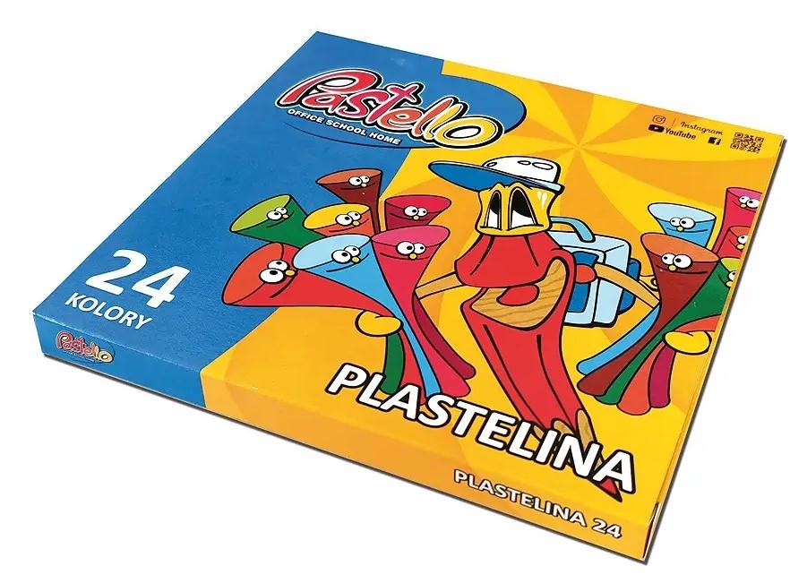 Plastelina 24 kolory. Przeznaczona do zabawy, nauki modelowania, tworzenia prac plastycznych, odciskania, wykrawania foremkami. Elastyczna, łatwa do modelowania, intensywne kolory. Nie brudzi rąk i nie przywiera do podłoża. Wyprodukowane w Polsce.