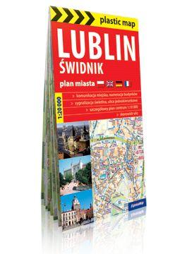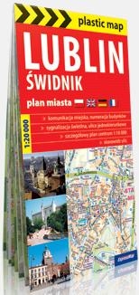 Dwustronnie foliowany, trwały plan Lublina i Świdnika?szczegółowy rysunek zabudowy wraz z numeracją budynków wzdłuż ulic i na osiedlach?linie autobusowe i trolejbusowe wraz z przystankami?sygnalizacja świetlna, ulice jednokierunkowe, parkingi?bogata treść turystyczna, m.in.: zabytki, muzea, szlaki turystyczne, rezerwaty przyrody, hotele i inne istotne obiekty?budynki użyteczności publicznej, centra handlowe?szczegółowy plan centrum Lublina w skali 1:10 000 (1 cm ? 100 m)?mapa okolic Lublina w skali 1:200 000 (1 cm ? 2 km)?skorowidz ulic