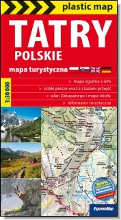 Dwustronnie foliowana, trwała mapa turystyczna Tatr polskich, mapa opracowana we współpracy zkrajoznawcami zregionu, dogodna dla turysty skala 1:30000 (1cm - 300m), bogata treść turystyczna, m.in.: szlaki piesze i czasy przejść, nartostrady i trasy zjazdowe, schroniska górskie i młodzieżowe, kempingi, pola namiotowe, parkingi, postoje busów i dorożek, przystanki autobusowe, cieniowanie plastycznie pokazujące ukształtowanie terenu, mapa zgodna z GPS - współrzędne geograficzne w układzie WGS-84, plan Zakopanego w skali 1:15000 (1cm - 150m), schemat szlaków turystycznych w skali 1:81000 (1cm - 810m), samochodowa mapa okolic Tatr w skali 1:225 000 (1 cm - 2,25 km), informator krajoznawczy.