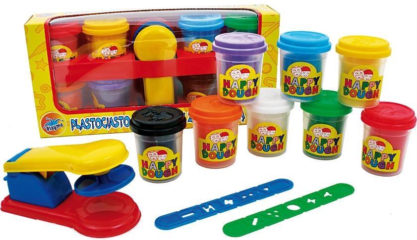 W zestawie: 8 pojemników z plastociastem, 2 linijki z kształtami, wyciskarka.