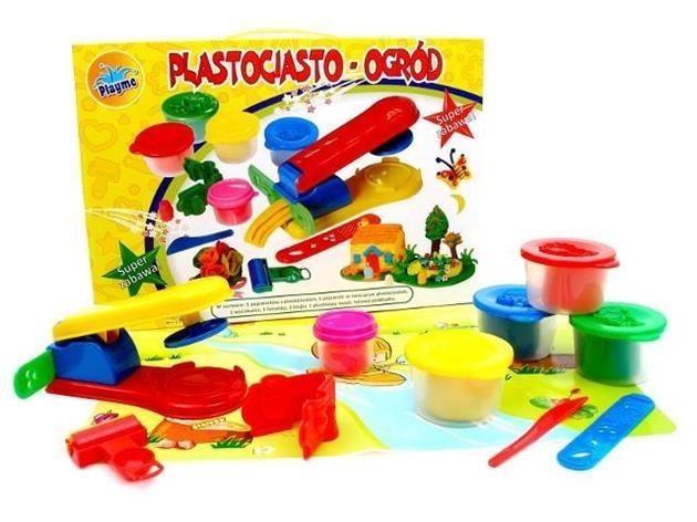 4 pojemniki z plastociastem oraz 1 pojemnik z plastociastem z brokatem.