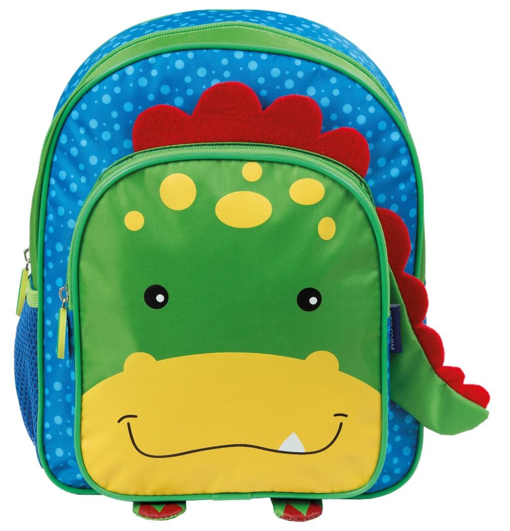 Kolorowy plecaczek z grafiką dinozaura. Wykonany z impregnowanej tkaniny. Plecak posiada dwie komory zapinane na zamek zakończony ozdobnym pullerem. Wnętrze plecaka wykończone jest podszewką. Długość szelek można regulować . Dodatkowo plecak posiada uchwyt do przenoszenia.