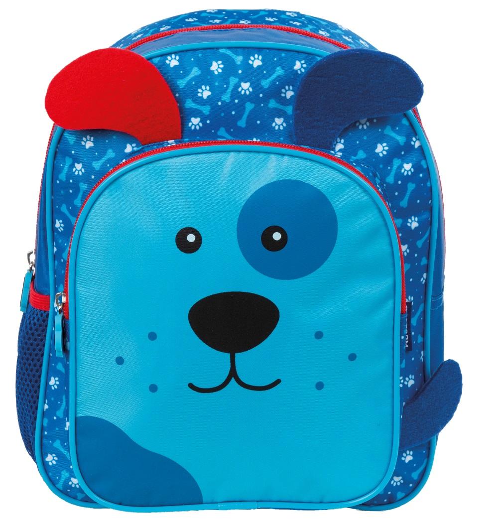 Kolorowy plecaczek z grafiką psią. Wykonany z impregnowanej tkaniny. Plecak posiada dwie komory zapinane na zamek zakończony ozdobnym pullerem. Wnętrze plecaka wykończone jest podszewką. Długość szelek można regulować .Dodatkowo plecak posiada uchwyt do przenoszenia.