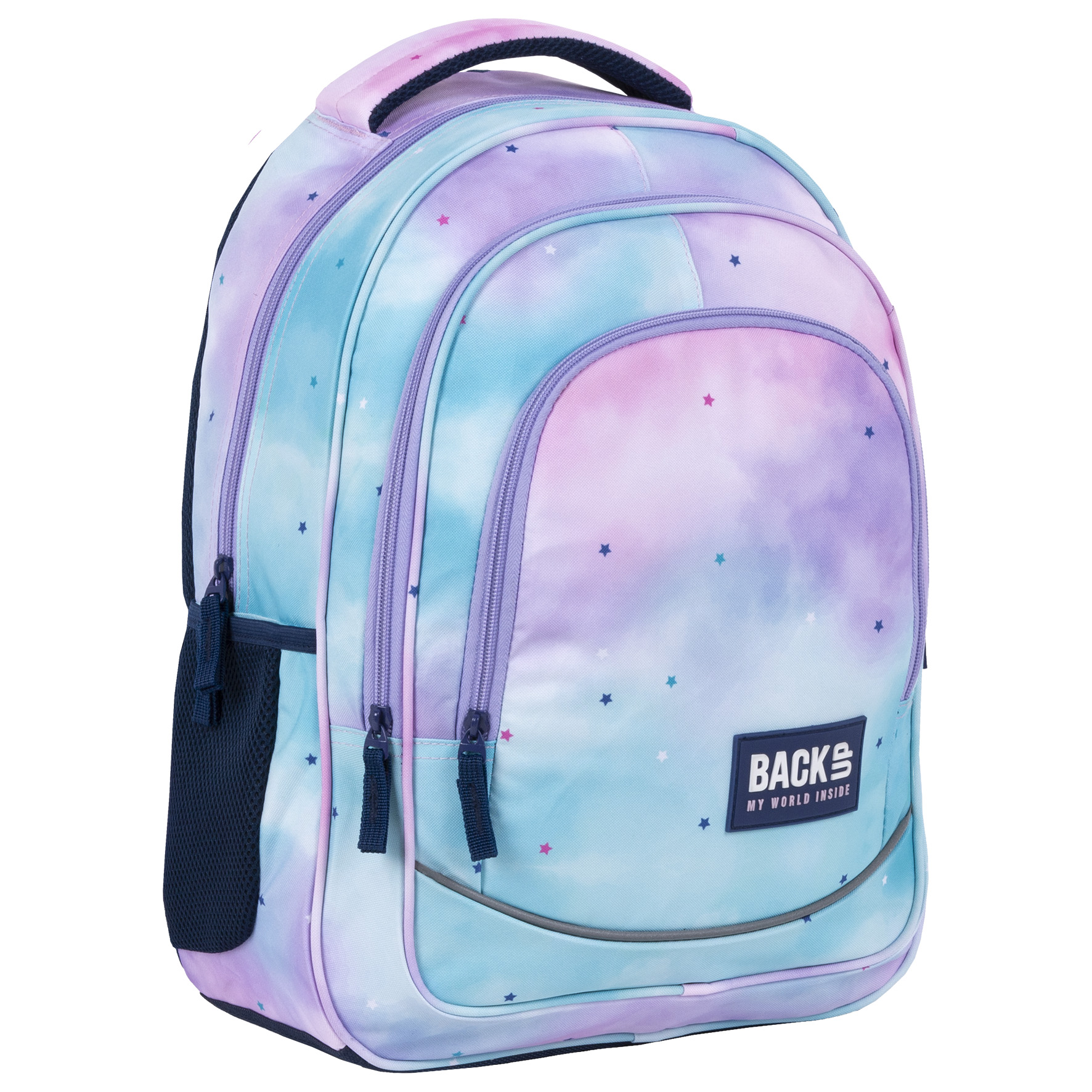 - Plecak zawiera również dno wykonane ze wzmocnionej tkaniny, przez co plecak nie brudzi się od spodu mimo jasnego wzoru i jest bardziej odporny na uszkodzenia.