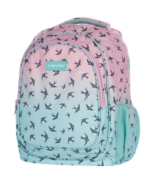Trzykomorowy plecak Head w kolorystyce różowo-miętowego ombre doskonale wpisuje się w tegoroczny trend. Jego niewątpliwą ozdobą jest wzór wielu tańczących jaskółek, unoszących się lekko na wietrze. Plecak Head posiada trzy funkcjonalne komory wyposażone w praktyczną kieszonkę oraz organizer na drobiazgi. Zastosowano w nim najnowszą technologię Ergo Back minimalizującą naciski na barki i kręgosłup oraz zapewniającą poczucie komfortu dziecka.