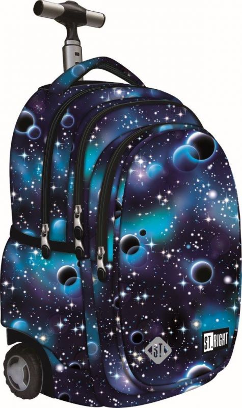 Funkcjonalność: 4 komory 2 kieszenie zewnętrzne 1 dodatkowa kieszeń wewnętrzna organizer z zawieszką na klucze przegroda na laptop i tablet Komfort i bezpieczeństwo: wytrzymałe i łatwo obracające się kółka dwustopniowa regulacja wysokości rączki miękkie szelki z regulacją długości możliwość ukrycia szelek oraz rączki w komorze plecaka materiał wodoodporny usztywniony spód uchwyty do suwaka głównej komory pozwalają na założenie zabezpieczenia kłódkowego lub z szyfrowaniem TSA element odblaskowy