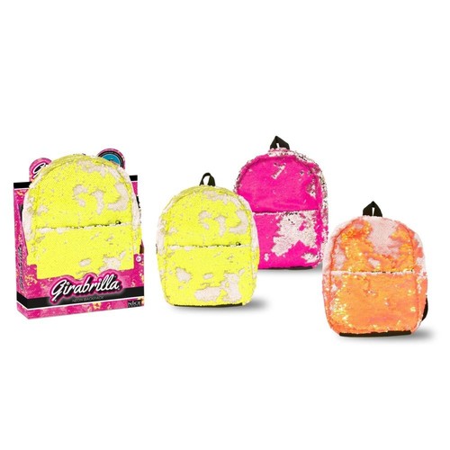 Fluorescencyjny plecak cały średniej wielkości z odwracanych cekinów, w wyjątkowym fluorescencyjnym kolorze. Nawet szelki są cekiniaste! Nikt Cię nie przeoczy! Różne kolory, towar wysyłany losowo. Wymiary: 35x25x15