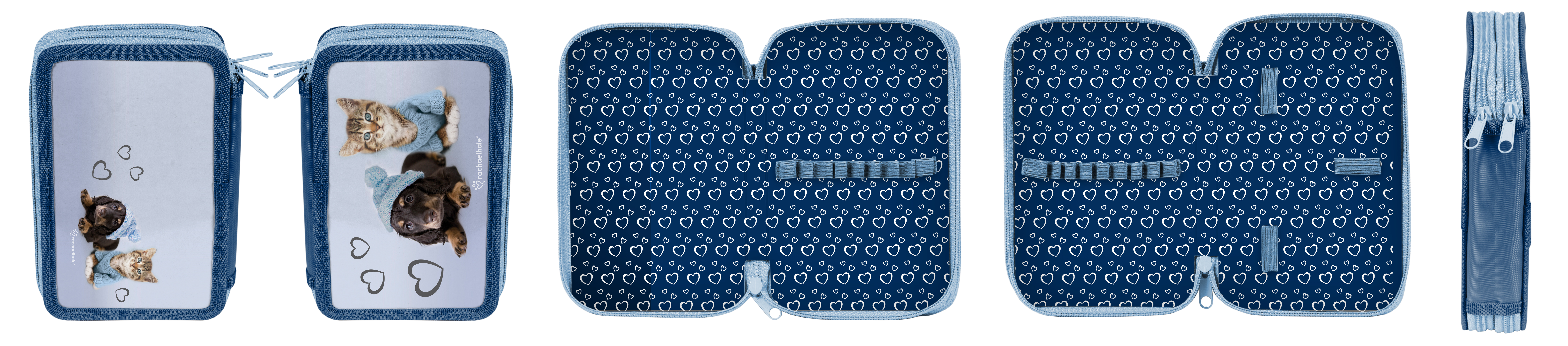 Piórnik 3-komorowy bez wyposażenia. Zadrukowane kolorowe wnętrze.