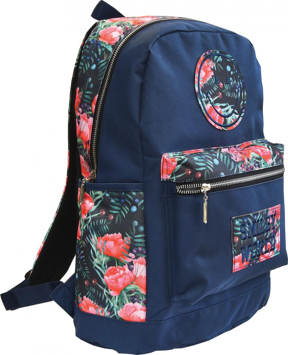 - na przodzie plecaka naszywki z buźką i napisem ‘SMILEY WORLD’