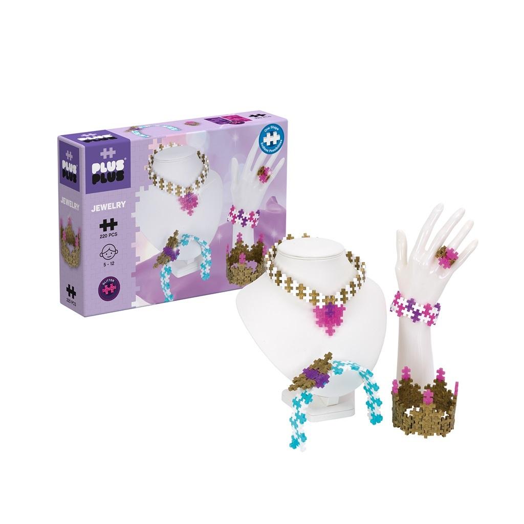 Zestaw zawiera 220 elementów oraz instrukcje dotyczące wykonania pięknej biżuterii, między innymi w kolorach złotym, różowym i fioletowym. Świetny sposób na zachęcenie dzieci do zabawy z Plus-Plus!