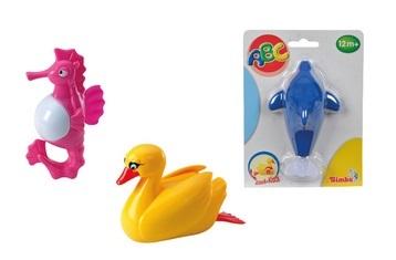 Nakręcane kolorowe zwierzątka do zabawy w wodzie. Do wyboru jedno z sześciu zwiarzątek: krokodyl, rybka, ptak, konik morski, rak lub delfin. Przeznaczone dla dzieci powyżej 12 miesiąca życia.