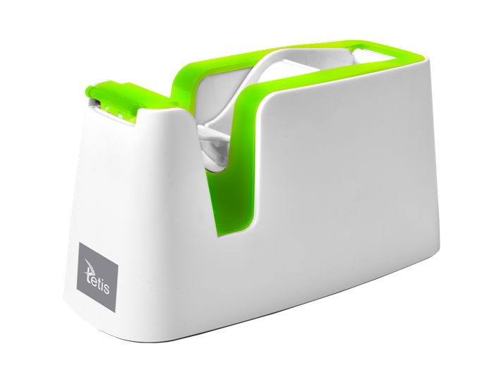 Podajnik do taśmy klejącej o szerokości do 18 mm. Solidna i trwała obudowa, ostre ostrze pozwala na łatwe odcinanie taśmy. Antypoślizgowy spód. Opakowanie: pudełko PP.