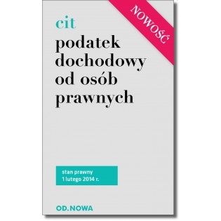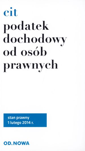 Nowa publikacja Wydawnictwa Odnowa Podatek dochodowy od osób prawnych CIT, jest zbiorem najistotniejszych przepisów dotyczących podatku CIT, tj. ustawę o podatku dochodowym od osób prawnych wraz z aktami wykonawczymi, Dyrektywy w sprawie wspólnego systemu opodatkowania spółek, a także przepisy dotyczące spółek kapitałowych. Zbiór zawiera liczne zmiany w ustawie o podatku dochodowym od osób prawnych, które wchodzą w życie w styczniu 2014r. Zaletą książki jest jej praktyczny, poręczny format i przejrzysty układ graficzny. Łatwą orientację w materiale umożliwia obszerny skorowidz. Zmiany oczekujące na wejście w życie umieszczono w ramkach. Kodeks opracowany został przez były zespół redakcyjny Wydawnictwa Park. Stan prawny: 1 lutego 2014r.