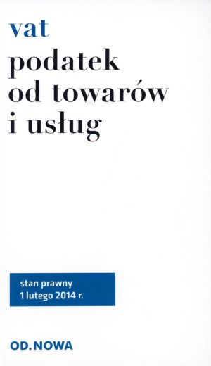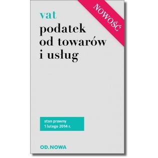 Nowa publikacja Wydawnictwa Odnowa Podatek od towarów i usług Vat, stanowi zbiór najistotniejszych przepisów dotyczących podatku VAT tj. tekst ustawy o podatku od towarów i usług, ustawy pokrewne oraz akty wykonawcze. Publikacja zawiera obszerną nowelizację ustawy o podatku VAT, która wchodzi w życie w styczniu 2014r. Zaletą książki jest jej praktyczny, poręczny format i przejrzysty układ graficzny. Łatwą orientację w materiale umożliwia obszerny skorowidz. Zmiany oczekujące na wejście w życie umieszczono w ramkach. Kodeks opracowany został przez były zespół redakcyjny Wydawnictwa Park. Stan prawny: 1 lutego 2014r.