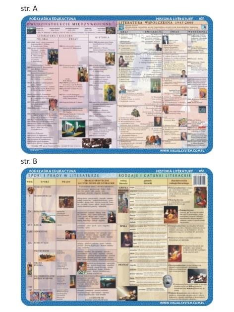 Laminowana i elastyczna podkładka na biurko, praktyczna pomoc w nauce, o wymiarach 40x30 cm, 20-lecie międzywojenne, literatura współczesna, epoki i prądy w literaturze, rodzaje i gatunki literackie