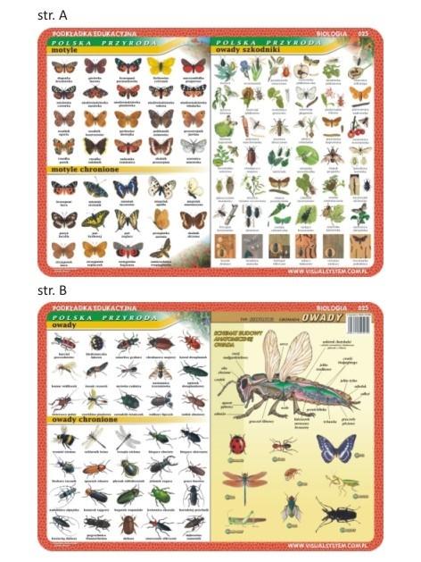 Laminowana i elastyczna podkładka na biurko, praktyczna pomoc w nauce, o wymiarach 40x30 cm, Motyle, owady szkodniki, owady