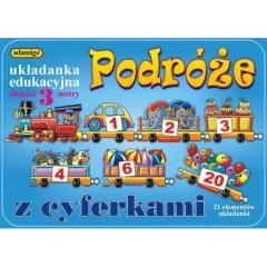 „Podróże z cyferkami” to układanka edukacyjna, która po ułożeniu mierzy aż 3 metry długości! Na każdym z elementów układanki, od spodu, znajduje się wierszyk, opowiadający w zabawny sposób o poszczególnej liczbie.