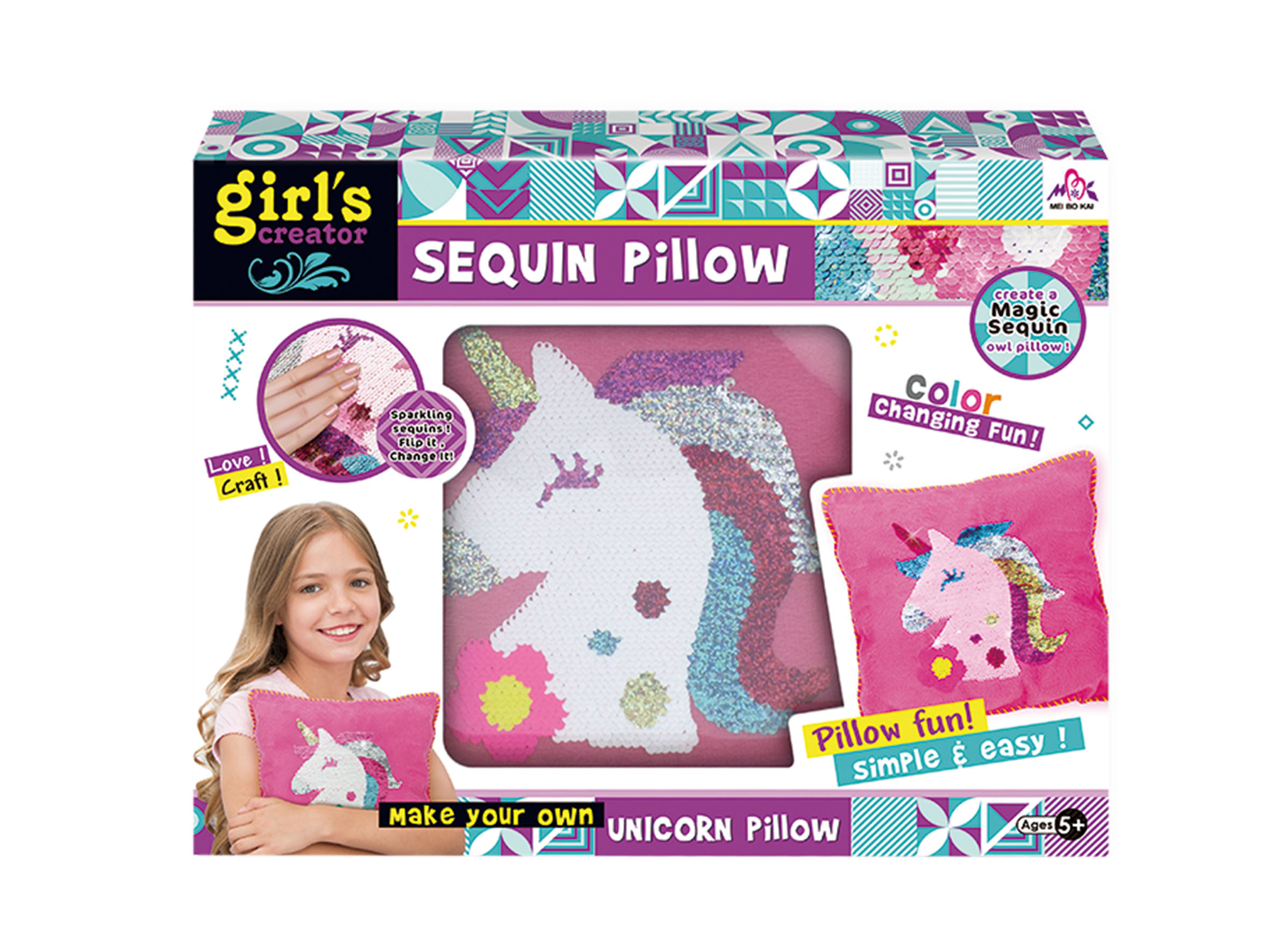 jednorożec zmienia kolor, w zestawie poszewka, wypłenienie, igła, nici