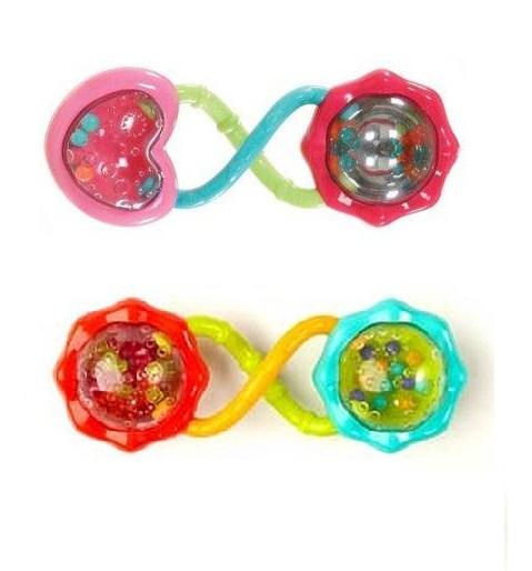Uchwyt grzechotki ma wypukły wzór, co stanowi atrakcję poznawczą dla dziecka i powoduje, że zabawka nie wyślizguje się z rączek. Lustereczko i koraliczki wewnątrz odbijają światło dając ciekawe efekty wizualne.