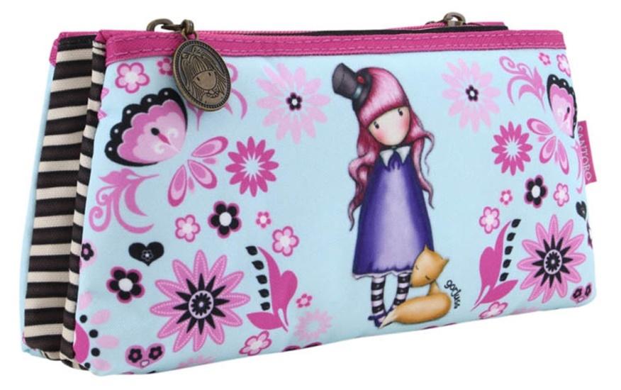 Zawiera dwie zapinane na suwak kieszenie. Suwak ozdobiony medalionem w stylu antycznego mosiądzu z główką dziewczynki Gorjuss. Zmieszczą się w nim zarówno ołówki i długopisy, a także inne drobiazgi.
