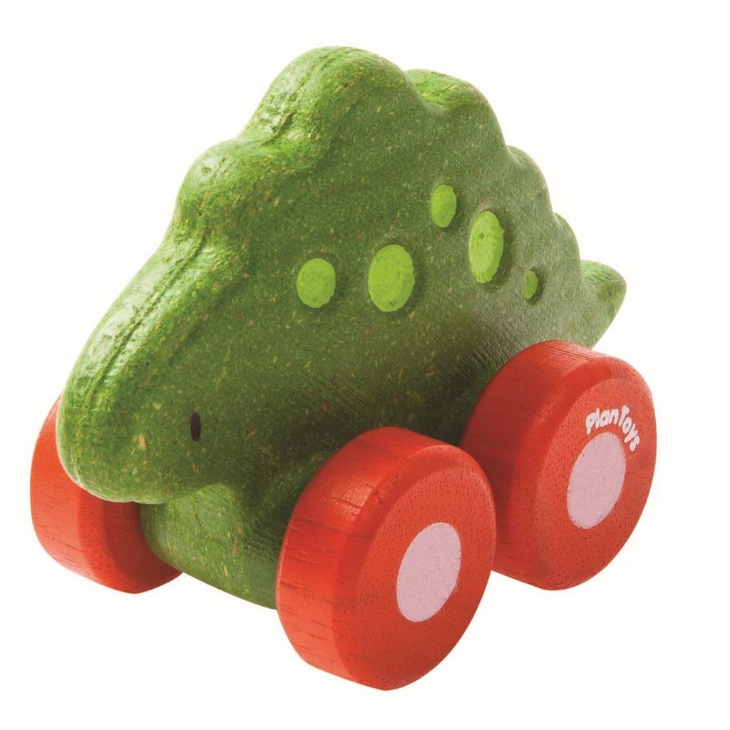 Śliczny pojazd w kształcie dinozaura idealnie pasuje do małych rączek.