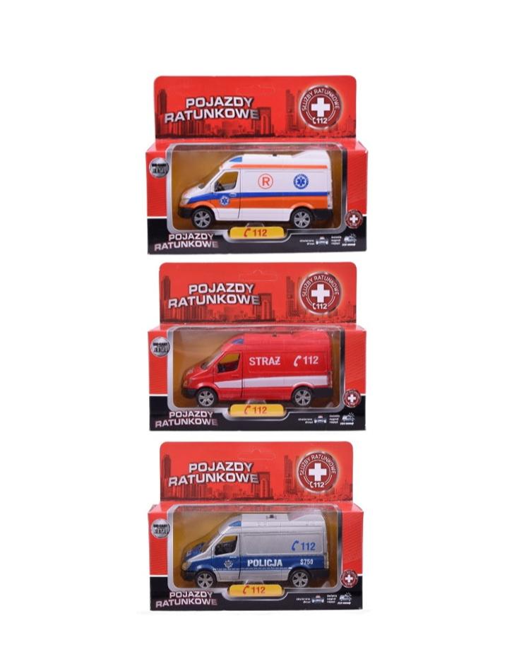 Seria pojazdów ratunkowych to realistycznie odwzorowane modele auta ,które codziennie widzimy na naszych drogach . Niosące nam pomoc w trudnych sytuacjach na drodze i nie tylko. Model metalowy z elementami plastykowmi z efektem dżwiękowym i świetlnym idealny dla kolekcjonerów pojazdów . Auto posiada otwierane drzwi i napęd.