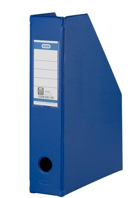 Pojemnik na czasopisma oklejony wewnątrz i na zewnątrz folią PVC w jasnoniebieskim kolorze. Grzbiet o szerokości 7 cm może pomieścić do 700 kartek. Na grzbiecie znajduje się dwustronna, wymienna etykieta opisowa z elementami w kolorze pojemnika. Okrągły otwór ułatwia zdejmowanie pojemnika z półki.