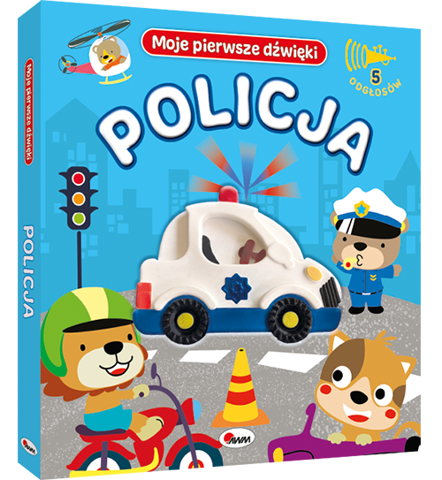 Książeczka sensoryczna – zawiera ELEMENTY DŹWIĘKOWE. Wspiera wszechstronny rozwój dziecka – pobudza ZMYSŁY WZROKU, DOTYKU I SŁUCHU. Prezentuje 5 DŹWIĘKÓW. Zawiera proste krótkie WIERSZYKI oraz WYRAZY DŹWIĘKONAŚLADOWCZE. Książka zabiera małych czytelników w niezapomnianą PODRÓŻ. Dzieci znajdą w niej krótkie WIERSZYKI związane z pracą wozu policyjnego oraz WYRAZY NAŚLADUJĄCE ODGŁOSY wydawane przez ten pojazd. Wyróżnikiem publikacji jest silikonowy moduł dźwiękowy w kształcie pojazdu prezentujący 5 różnych DŹWIĘKÓW. Dzięki książce maluch dowie się, jakie dźwięki wydają poszczególne części wozu policyjnego. Sympatyczne ILUSTRACJE charakteryzują się ŻYWĄ KOLORYSTYKĄ. Książka • działa na RÓŻNE ZMYSŁY: WZROK, DOTYK, SŁUCH • zapoznaje z dźwiękami wydawanymi przez WÓZ POLICYJNY • rozwija WYOBRAŹNIĘ • wzbogaca SŁOWNICTWO Moje pierwsze dźwięki Seria książeczek SENSORYCZNYCH przeznaczona dla MŁODSZYCH DZIECI. Wprowadza w świat różnorodnych dźwięków. Uwagę przyciągają BARWNE ILUST