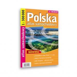 Samochodowy atlas Polski w skali 1:300 000 to wielokrotnie wyróżniana publikacja przeznaczona dla kierowców. Oprócz aktualnej mapy z treścią dostosowaną do potrzeb prowadzących pojazdy taką jak np. sieć dróg z numeracją, lokalizacja czarnych punktów czy miejscach prawdopodobnej kontroli radarowej zawiera również wiele innych dodatkowych informacji. Do najważniejszych należą najcenniejsze zabytki zaznaczone i opisane bezpośrednio na tej mapie. Ponadto atlas wyposażono w:- przeglądową mapę Polski w skali 1 : 1000000 służącą do planowania podróży,- 20 planów przejazdowych miast,- mapy z miejscami tworzenia się korków i proponowanymi objazdami,- rysunki i opis znaków drogowych,- instruktaż udzielania pierwszej pomocy,- wzór wspólnego zgłoszenia wypadku, - wykaz numerów telefonów alarmowych oraz - skorowidz miejscowości przedstawionych na mapie w skali 1 : 300000.