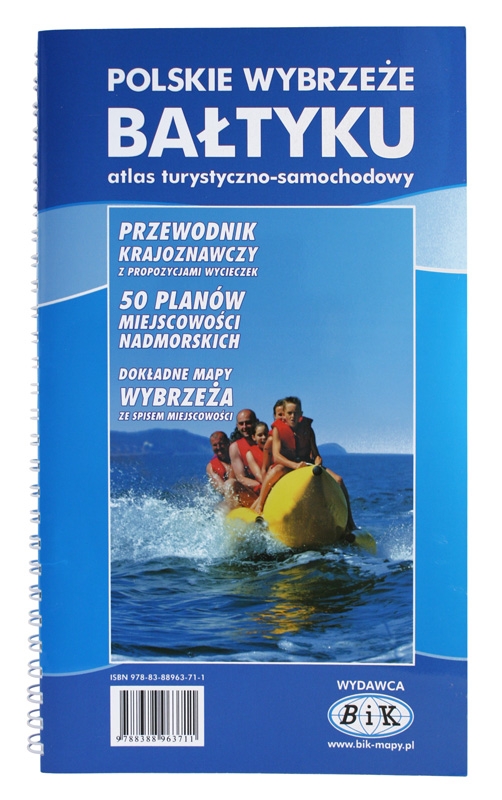 - mapy samochodowo-turystycznej pasa nadmorskiego w 11 rozkładanych arkuszach uzupełnionej spisem miejscowości. Aktualna numeracja dróg, atrakcje krajoznawcze i baza turystyczna, krainy geograficzne, lokalizacja parków narodowych i krajobrazowych oraz rezerwatów przyrody, linie żeglugowe i ważniejsze szlaki turystyczne;