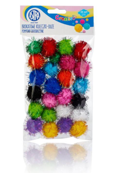 Pompony dekoracyjne brokatowe do scrapbookingu, ozdabiania bombek i jajek styropianowych, kartek okolicznościowych, zaproszeń i zakładek do książek. Doskonale nadają się do pakowania prezentów i do tworzenia dekoracji świątecznych i stroików.