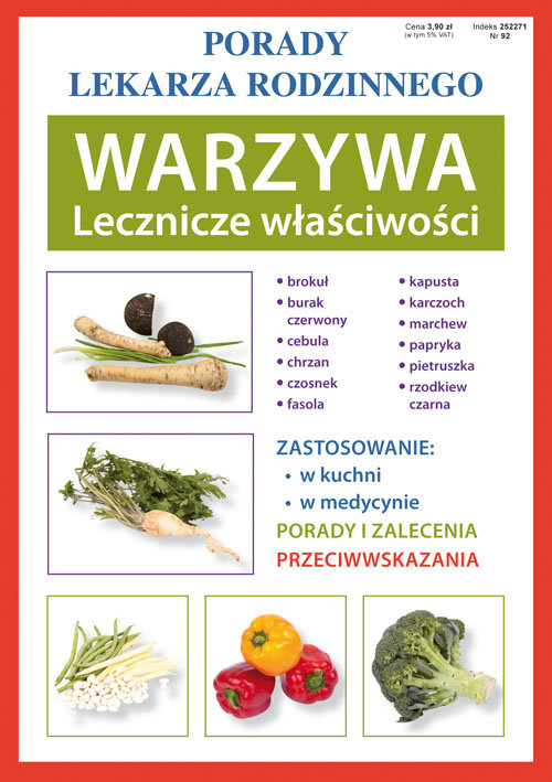 Poznaj właściwości lecznicze najpopularniejszych warzyw, a także ich zastosowanie w kuchni i kosmetyce. Znajdziesz tu również informacje na temat tego, jak wzmocnić odporność organizmu, jak zdrowo się odżywiać, jaka żywność może osłabiać organizm, jak właściwie przygotowywać dania z warzyw. Poradnik skierowany jest do każdego, kto chce zadbać o swoje zdrowie i pragnie uważniej przyjrzeć się codziennej diecie. Polecamy również e-booki: Owoce. Lecznicze właściwości, Owoce egzotyczne.