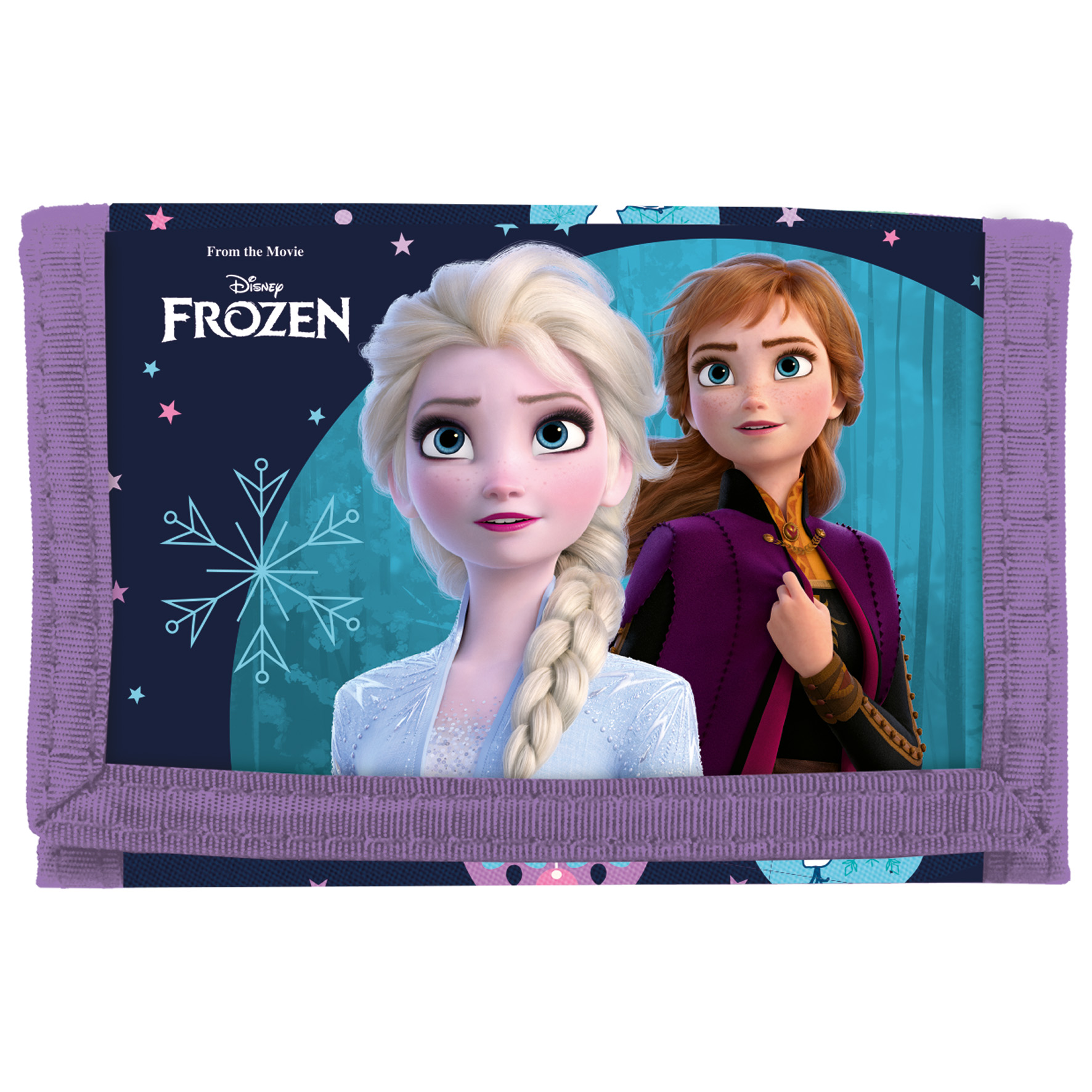 Portfel dla dziecka z Krainą Lodu. Doskonały portfelik z Anną i Elsą z kieszonkami na monety, banknoty, karty itd. Doskonały portfel dla dziewczynki, fanki Krainy Lodu. Nowość z kolekcji 2022. Portfelik składany na 3 i zamykany na rzep.