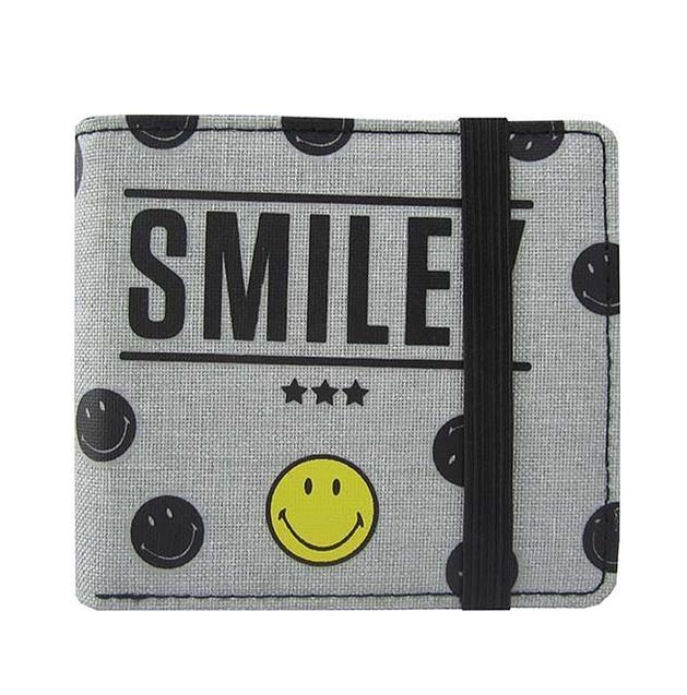 Materiałowy portfel z gumką Smiley, wymiary: 12,5X9,5 cm.