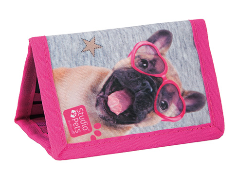 Portfel ze sznurkiem do zawieszenia. Jedna przegródka na zamek na monety, jednak przezroczysta kieszonka np. na zdjęcie, dwie dodatkowe kieszonki, jedna kieszeń na całej długości portfela.