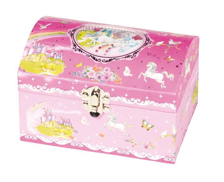 Prześliczna pozytywka-szkatułka na skarby małej damy. Po otwarciu szkatułki konik zaczyna tańczyć do pięknej melodii z Jeziora Łabędzi.