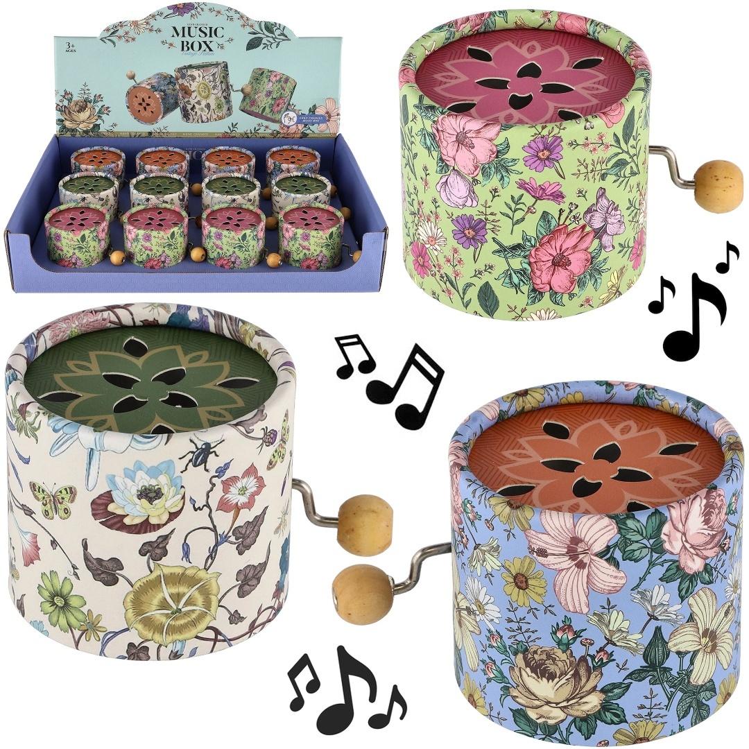 Pozytywka "MUSIC BOX" - Retro Kwiatowe Wzory Wprowadź odrobinę nostalgii i magii do pokoju Twojego dziecka (lub swojego!) dzięki naszym uroczym pozytywkom "MUSIC BOX". Te pięknie zdobione, ręcznie nakręcane pozytywki to idealny sposób na relaks, wyciszenie i rozbudzenie miłości do muzyki, a ich retro kwiatowe wzory dodadzą uroku każdemu wnętrzu. Ponadczasowy Urok i Spokojna Melodia: Każda pozytywka to małe dzieło sztuki. Wykonane z solidnego kartonu, pokryte są zachwycającymi, delikatnymi wzorami kwiatowymi w stylu vintage, dostępnymi w kilku wariantach kolorystycznych (widoczne na zdjęciu: zielony, kremowy, niebieski). Wystarczy przekręcić korbkę z boku, aby usłyszeć kojącą, spokojną melodię, która przeniesie słuchacza w świat marzeń i fantazji. Otwory na górze pozytywki w kształcie kwiatowego ornamentu pozwalają na wydobycie się dźwięku. Idealna do Rozwoju i Relaksu: Rozwój sensoryczny: Melodia pozytywki stymuluje zmysł słuchu, a wzory wzroku. Wyciszenie i relaks: Spokojna muzyka pomaga w zasypianiu, wycisza i tworzy przyjemną atmosferę. Pobudzanie wyobraźni: Dzieci mogą tworzyć własne historie i scenariusze do słuchanej melodii. Rozwój motoryki małej: Obsługa korbki to proste ćwiczenie dla małych rączek. Doskonały Prezent i Element Wystroju: Te pozytywki to idealny prezent na chrzciny, urodziny, baby shower, lub jako urocza pamiątka. Świetnie sprawdzą się jako element dekoracyjny w pokoju dziecięcym, salonie, czy sypialni, dodając im ciepła i indywidualnego charakteru. Pozytywki są również doskonałym przedmiotem kolekcjonerskim. Specyfikacje (dla pojedynczej pozytywki): Wymiary: 6x7x6cm Materiał: Solidny karton, mechanizm metalowy, drewniana korbka. Wzory: Różnorodne kwiatowe wzory w stylu retro/vintage (kolory wariantów mogą się różnić, zależnie od dostępności). Obsługa: Ręcznie nakręcana korbka. Zalecany Wiek: Od 3 lat (ze względu na małe elementy mechanizmu i delikatną konstrukcję dla najmłodszych) Wybierz swój ulubiony wzór i zanurz się w czarującym świecie dźwięków z naszą pozytywką "MUSIC BOX"!
