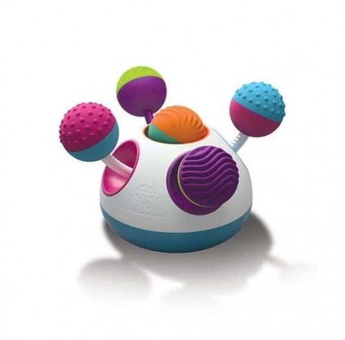 Jedna zabawka, a tyle rzeczy do odkrycia. Popchnij różową kulę z jednej strony, a niebieska z drugiej strony Klickity wysunie się w górę. Zieloną i fioletową kulę można klikać do i ze środka zabawki, a kulą na środku można kręcić, kręcić i kręcić.