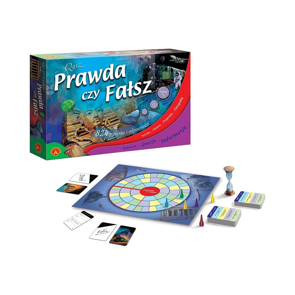 Dobrą zabawę, wiele emocji i mnóstwo ciekawych informacji - wszystko to znajdą uczestnicy gry ""Prawda czy Fałsz"". Zwycięstwo w tej grze zależy głównie od tego, czy gracz prawidłowo określi przeczytaną wcześniej z karty informację jako prawdziwą lub fałszywą. Czytane podczas gry stwierdzenia dotyczą czterech dziedzin: hitorii, techniki, przyrody i geografii. Szansę na wygraną w rozgrywce wykorzysta jeden z graczy, ale każdy z jej uczestników pozna wiele interesujących wiadomości.