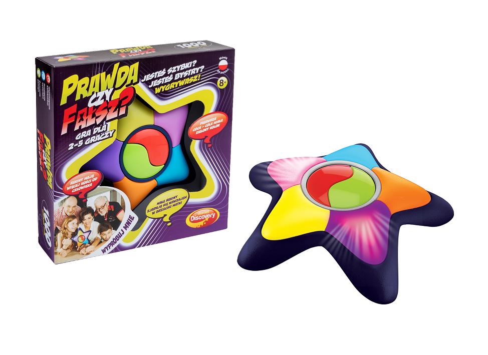 Poznaj prawdopodobnie najbardziej innowacyjną grę na rynku! Gra z ponad 1000 pytań z różnych dziedzin, została skonstruowana tak, aby zarówno dzieci, nastolatkowie jak i osoby dorosłe mogły spędzać razem czas doskonale bawiąc się i ucząc. Niektóre z tych ciekawostek mogą powodować napady śmiechu, więc świetna atmosfera gwarantowana! Gra przeznaczona jest dla 2-5 graczy. Zabawka będzie mówiła szalone zdania, a zadaniem graczy jest odgadnięcie czy są one prawdziwe czy fałszywe. Gracz wybiera swój kolor aby odpowiedzieć. Następnie jeżeli według niego zdanie jest prawdziwe, naciska ZIELONY przycisk, jeżeli jest fałszywe naciska CZERWONY. Każdy gracz zaczyna grę z pulą 20 punktów. Jeżeli odpowie prawidłowo zdobywa 1 punkt, jeżeli odpowie źle traci 2 punkty. Gracz z największą liczbą punktów wygrywa. Gra jest genialnym uzupełnieniem spotkań towarzyskich. Niewątpliwym plusem gry jest gimnastyka umysłu gracza, gdyż poszerza on swoją wiedzę i trenuje pamięć.