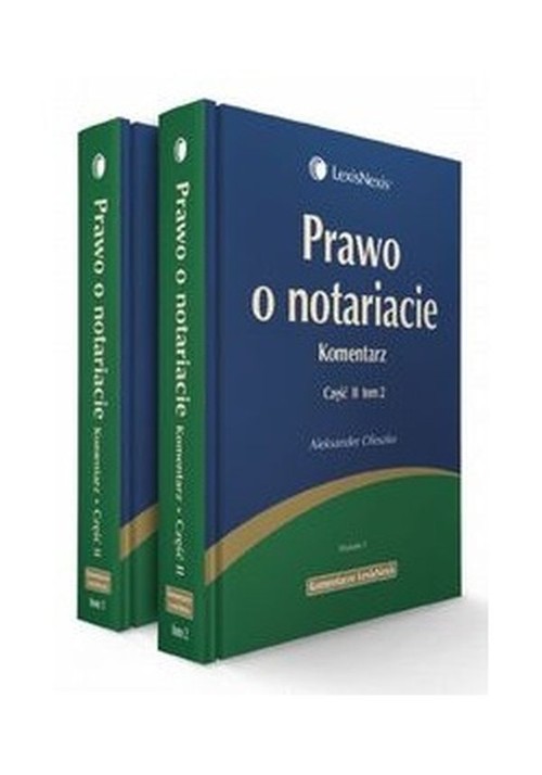 Prawo o notariacie. Komentarz. Część II stanowi kontynuację części I tego Komentarza, która ukazała się w 2011 r. W części II zostały kompleksowo omówione wszystkie zagadnienia dotyczące czynności notarialnych. W tomie 1 skomentowano przepisy ogólne dotyczące czynności notarialnych oraz tryb ich dokonywania. W komentarzu przedstawione zostały m.in. rodzaje czynności notarialnych, problematyka odmowy dokonania czynności notarialnej, cele i funkcje aktu notarialnego, skutki obrotu nieformalnego. Gruntowne podstawy teoretyczne, poszerzone o bogate orzecznictwo oraz własną praktykę Autora, jako wieloletniego sędziego sądów powszechnych, specjalizującego się w problematyce notarialnej i wieczysto księgowej, czynią komentarz publikacją o dużych walorach specjalistycznych, a zarazem interdyscyplinarnych (prawo prywatne i publiczne). Adresatami komentarza są notariusze, od których – jako profesjonalistów – wymagana jest szczególna staranność i znajomość prawa, aplikanci i asesorzy notarialni, adwokaci, radcowie.