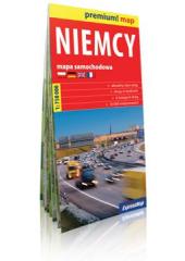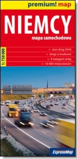 Mapa papierowa w trwałej i wygodnej kartonowej oprawie. Stan dróg 2011, odcinki w budowie, autostrady wraz z numerami węzłów, szczegółowa kategoryzacja i numeracja dróg, odległości drogowe w kilometrach, promy samochodowe, plastyczna rzeźba terenu, lasy, parki narodowe, szczegółowa mapa Zagłębia Ruhry w skali 1:500 000, skorowidz miejscowości.