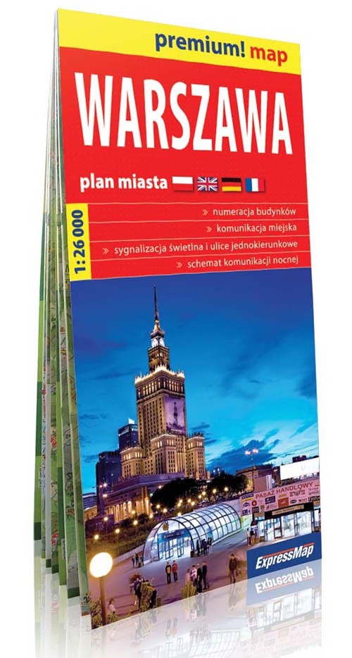 Mapa papierowa w trwałej i wygodnej kartonowej oprawie. Szczegółowy rysunek zabudowy wraz z numeracją budynków wzdłuż ulic i na osiedlach, linie autobusowe i tramwajowe wraz z przystankami, sygnalizacja świetlna, ulice jednokierunkowe, parkingi, bogata treść turystyczna, m.in.: zabytki, muzea, hotele i inne istotne obiekty, budynki użyteczności publicznej, centra handlowe, szczegółowy plan centrum w skali 1:13 000 (1 cm - 130 m), schemat nocnych linii autobusowych, mapa strefy płatnego parkowania, informator teleadresowy, skorowidz ulic.