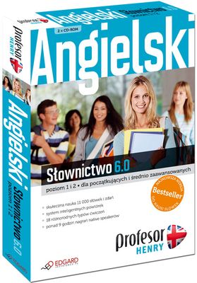 Profesor Henry 6.0 Słownictwo poziom 1 i 2 to najnowsza wersja bestsellera do nauki słówek - kursu do intensywnej i wszechstronnej nauki języka. Program przeznaczony jest dla osób, które potrzebują gotowych wzorców i chcą szybko opanować słownictwo niezbędne w aktywnej i swobodnej konwersacji z obcokrajowcem. Siłą Profesora jest System Inteligentnych Powtórek i urozmaicone ćwiczenia - gwarantują szybką i efektywną naukę.Obecnie Profesor uczy aż 11 000 angielskich słówek, wyrażeń i zdań. Program jest w pełni multimedialny - wszystkie przykłady zostały udźwiękowione przez rodowitych Anglików (ponad 9 godzin nagrań), a użytkownik może korzystać z opcji nagrywania przez mikrofon. Profesor Henry jest doskonałą pomocą dla maturzystów i wszystkich przygotowujących się do egzaminów - utrwala i poszerza zasób słownictwa. Opanowanie materiału językowego z kursu pozwala aktywnie i swobodnie prowadzić konwersacje oraz korespondencję z obcokrajowcem na poziomie A1-B1 wg klasyfikacji Rady Europy.Najważniejsze zmiany w nowej wersji: powiększono bazę słownictwa - teraz kurs uczy aż 11 000 słów i zdań angielskich zwiększono ilość nagrań - nowy Henry zawiera 9 godzin wysokiej jakości nagrań native speakerów dodano nowe typy ćwiczeń - obecnie Profesor dysponuje 18 ich rodzajami wzbogacono o nowe opcje, m.in. dynamicznie generowane gry językowe (""znajdź słowa"", memory) dodano łatwe drukowanie karteczek ze słówkami (awers - polski i rewers - angielski) oraz list słówek i zdań ćwiczenia dodatkowe - tabele, prezentacje, łączenie w pary, ćwiczenia użytkownika przygotowano nowoczesną oprawę graficzną i uproszczono interfejs wbudowano edytor słownictwa - w prosty sposób można samodzielnie dokonywać zmian w bazie programu i łatwo dodawać nowe słówka zastosowano automatyczną aktualizację przez Internet oraz narzędzie do skopiowania na twardy dysk plików z nagraniami