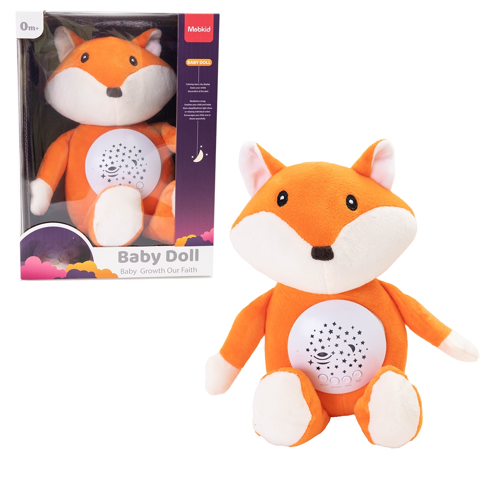 Dodatkowo brzuszek liska mieni się kolorowymi światłami, a gdy w pokoju będzie ciemno wypełni się on kolorowo migoczącymi gwiazdkami.