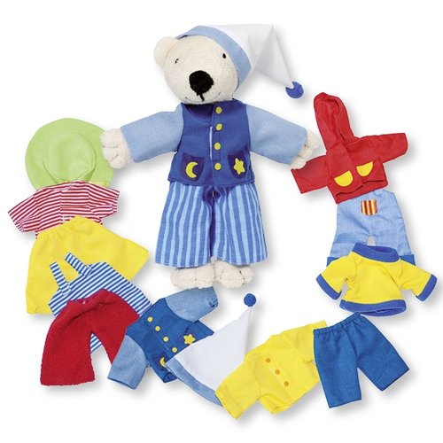 Rewelacyjnie jest ćwiczyć zdolności manualne przebierając tego pluszowego misia! Małe rączki nauczą się chwytania, przeciągania ubranek. Dodatkowo dzieci uczą się dobierania stroju np. do pogody.