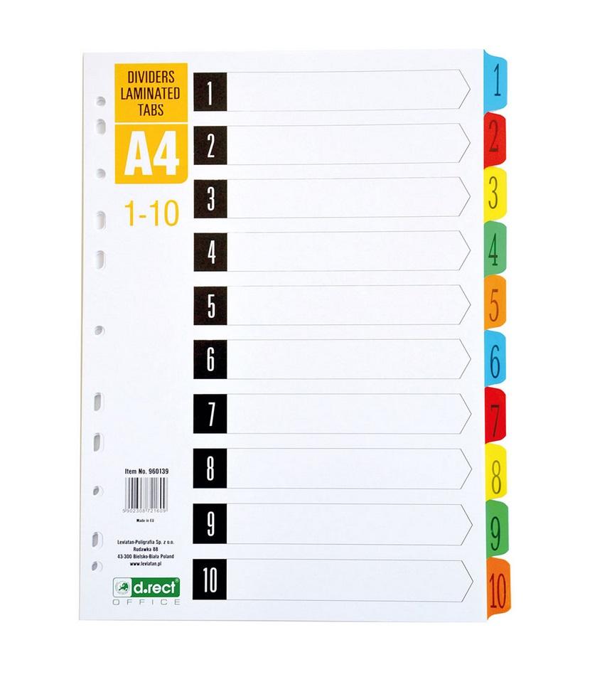 - przekładki kartonowe z laminowanym indeksem - ułatwiają segregowanie dokumentów - numerowane indeksy - uniwersalna perforacja umożliwia wpięcie do każdego rodzaju segregatora - 10 przekładek: 1 - 10 - rozmiar A4